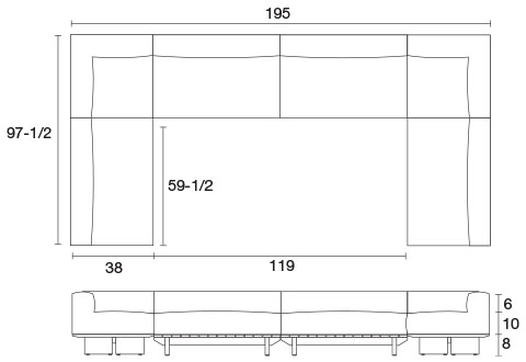 Sectional frames connect with steel brackets and include leveling feet. Side table extension can be added to any Cascade frame.