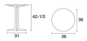 Round table measures 36 in. in diameter.