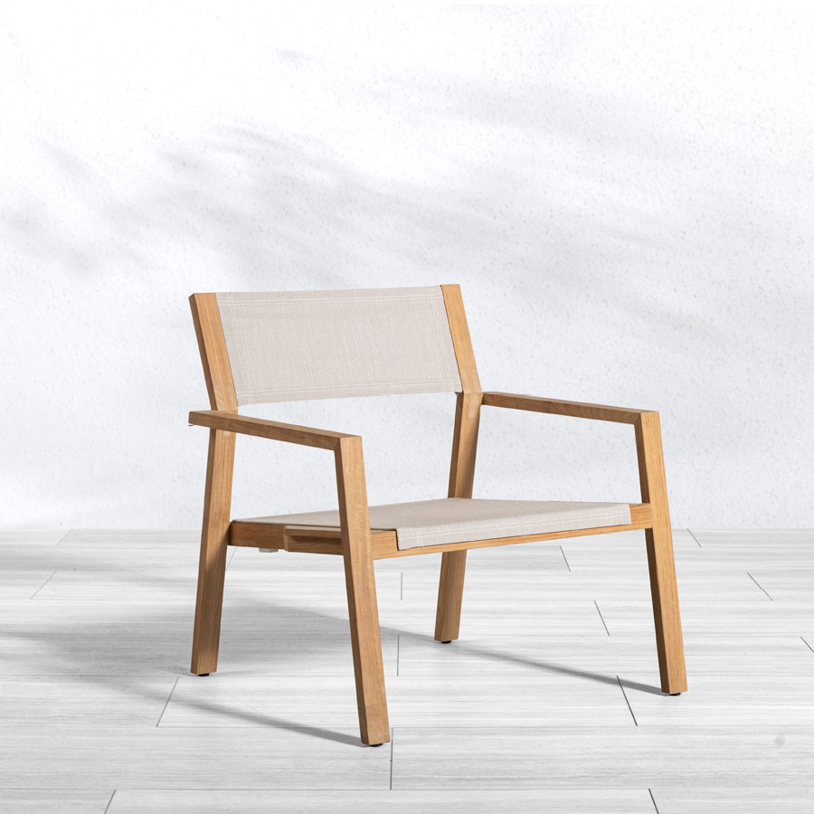 Outdoor mesh sling in Birch stays cool and resists fading.