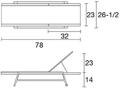 Chaise seat height elevated to 14 in. for easier access.