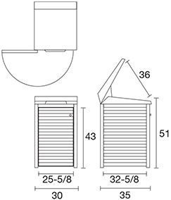 Attractive storage for wheeled trash bins with 55- to 65-gallon capacity.