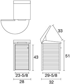 Attractive storage for wheeled trash bins with 55- to 65-gallon capacity.