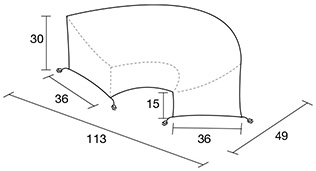 Outdoor 9 ft curved sectional cover measures 113" wide x 49" deep x 30" high. See measurements tab for more details.