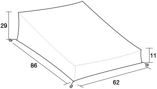 Outdoor cabana cover measures 62" wide x 86" deep x 29" high.