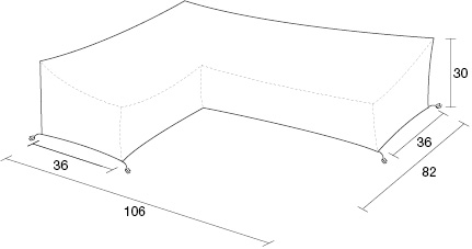Measures 106 in. wide by 82 in. deep by 30 in. high.