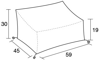 Measures 59 in. wide by 45 in. deep by 30 in. high.